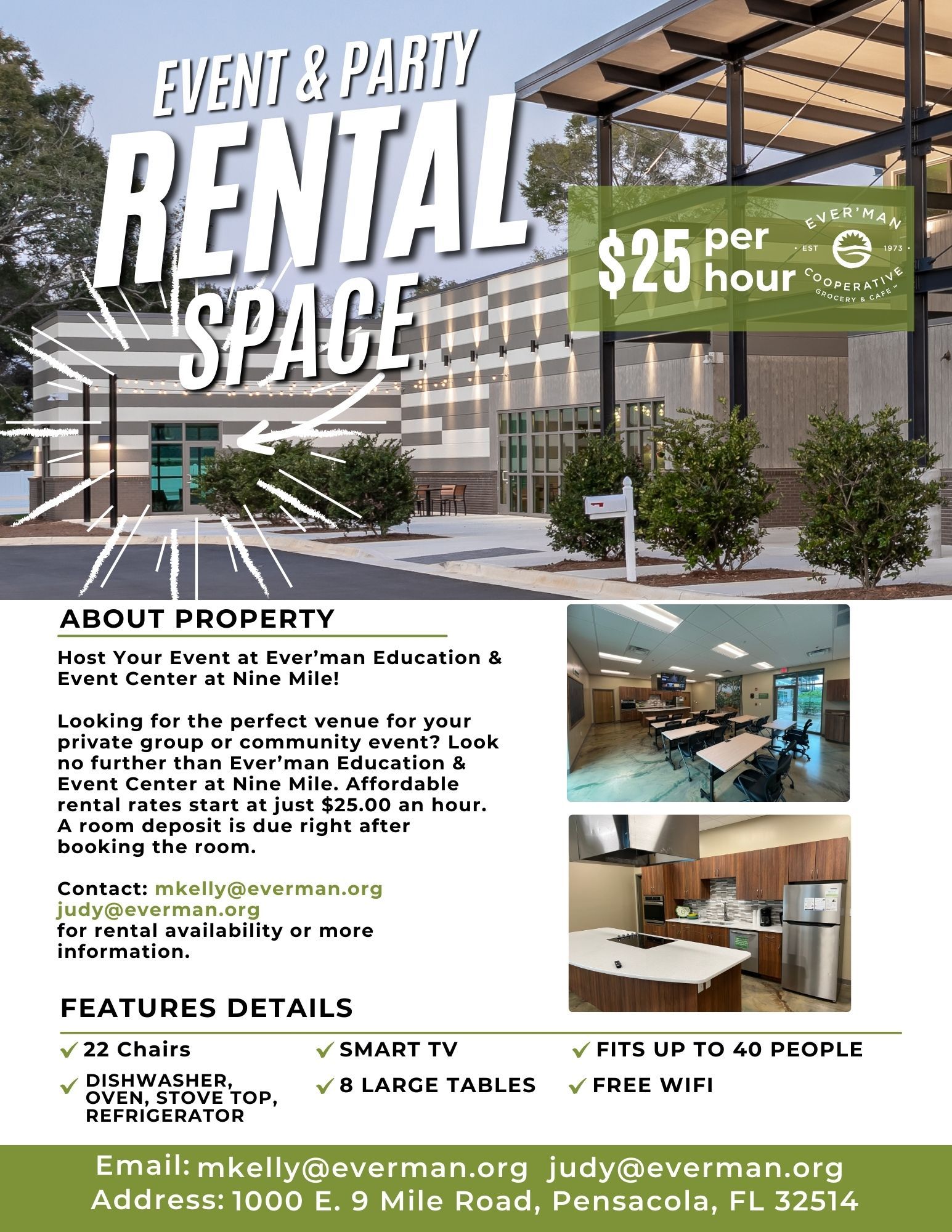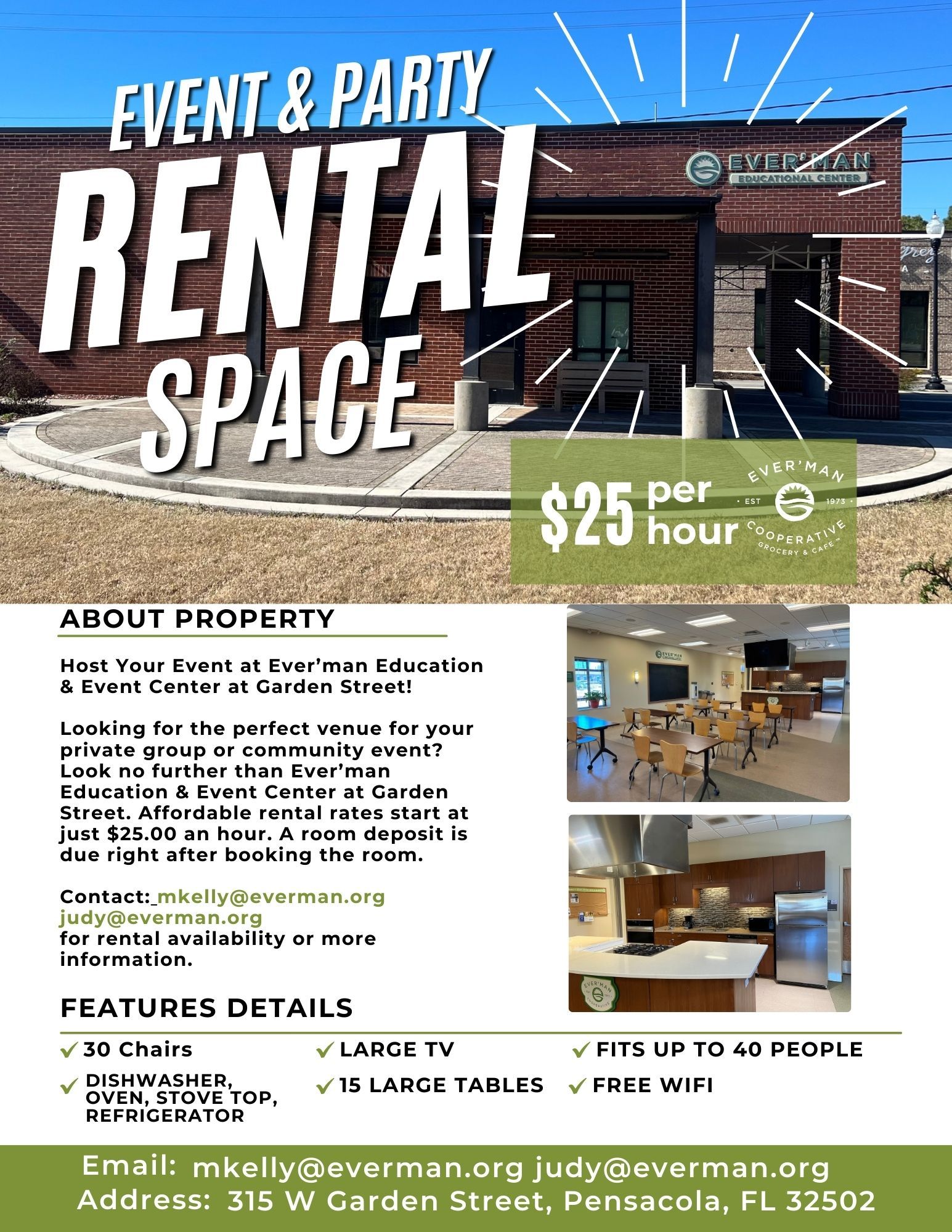 Room Rental available: contact mkelly@everman.org judy@everman.org